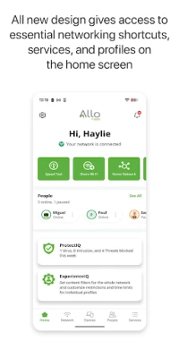 ALLO IQ allows subscribers to secure and take control of their home Wi-Fi network. Secure your home with app features such as network security, SSID and password management. Take control with app features such as parental controls and block unwanted content from entering your home.