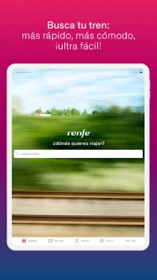 Aplicación oficial de Renfe para la compra y gestión de tus viajes en trenes Ave, Larga Distancia, Media Distancia y Avant.