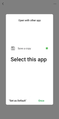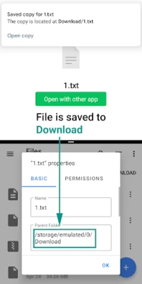 Select this app in "open with" and the file will be copied to the "Download" folder.