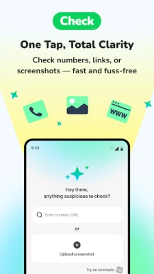 🔍 Check – Verify phone numbers, URLs, and even screenshots in one place